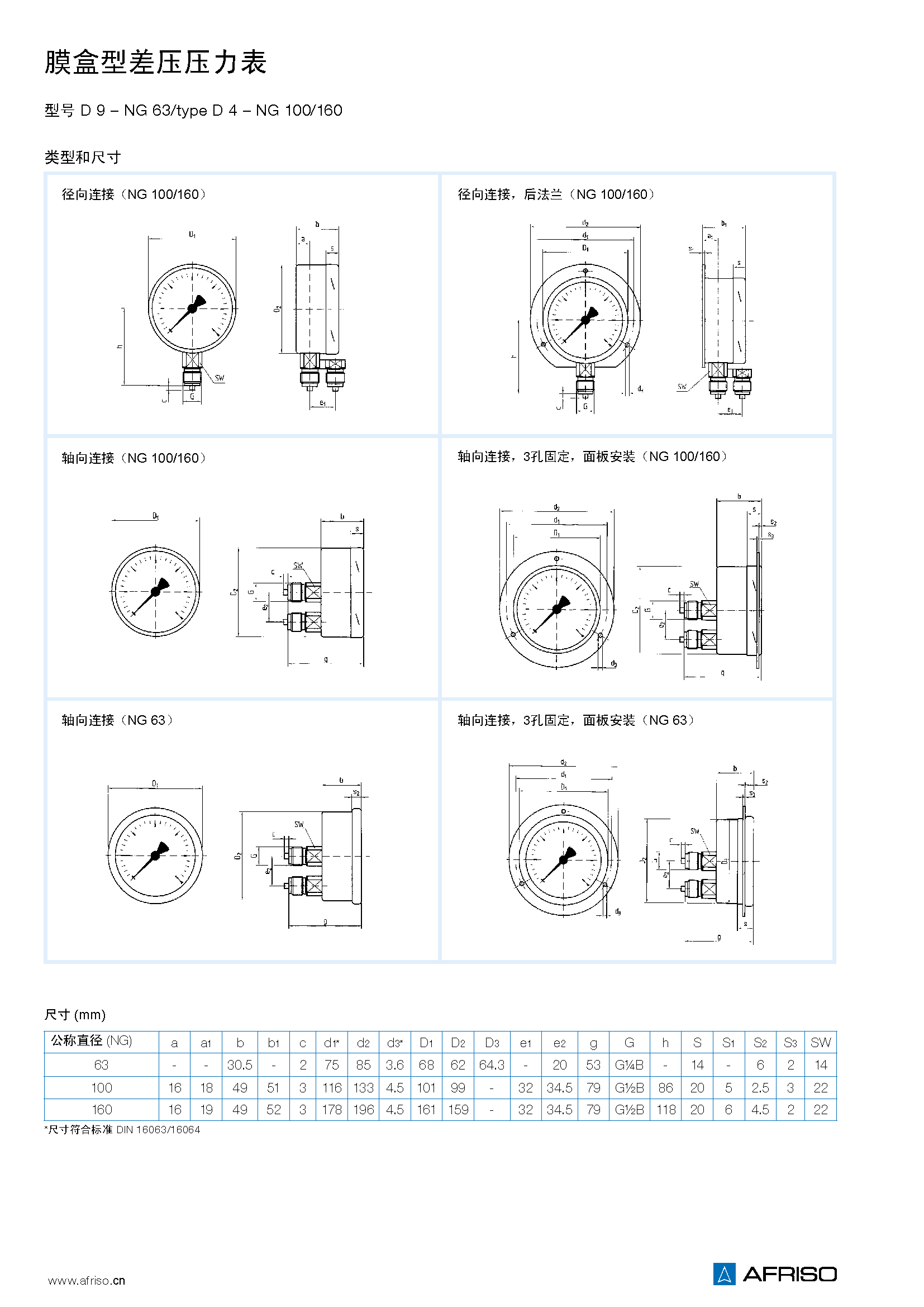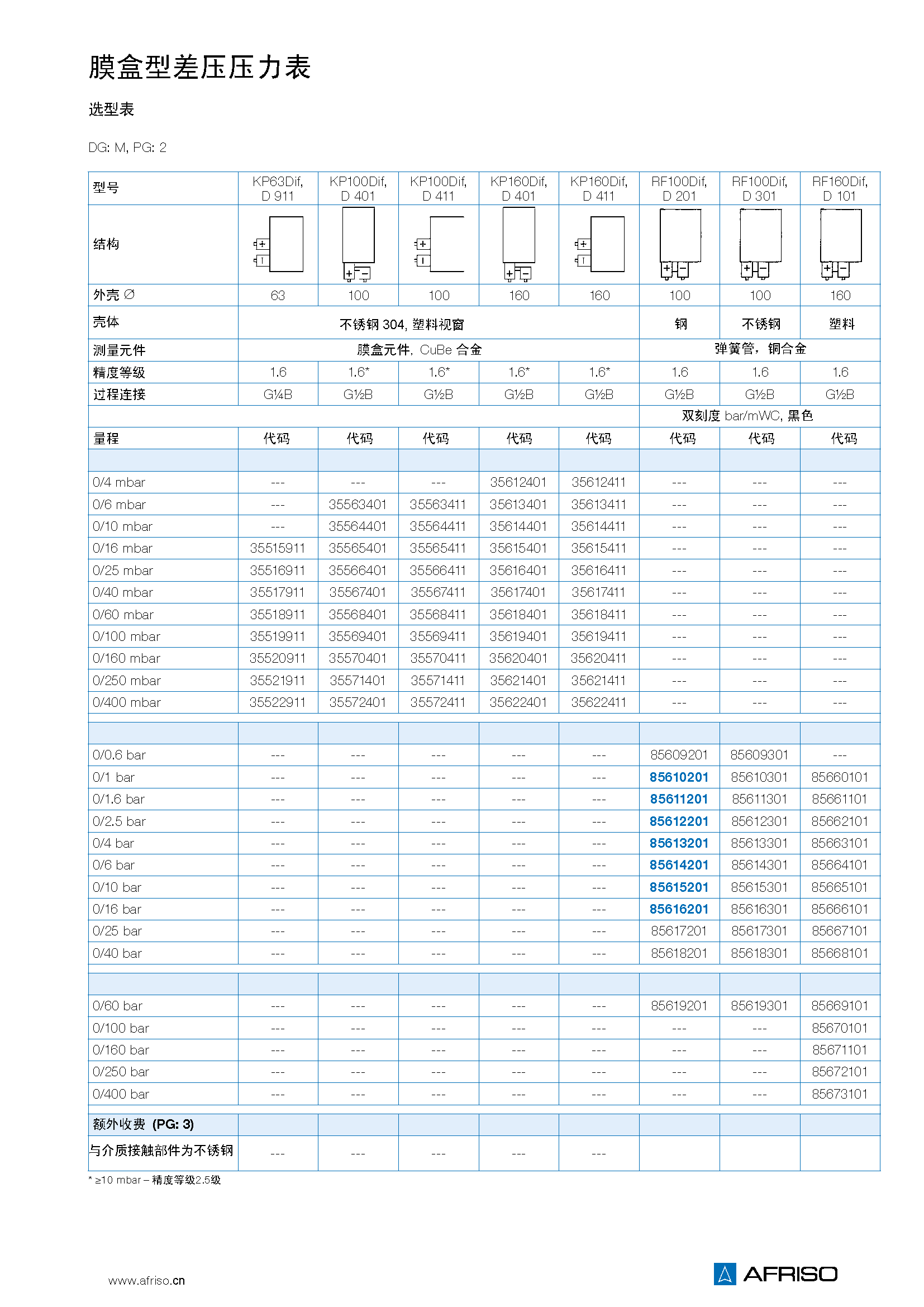 NG 63 0/1.6 到0/40 KPa NG 100 0/0.6 到 0/40 KPa NG 160 0/0.4 到 0/40 KPa |