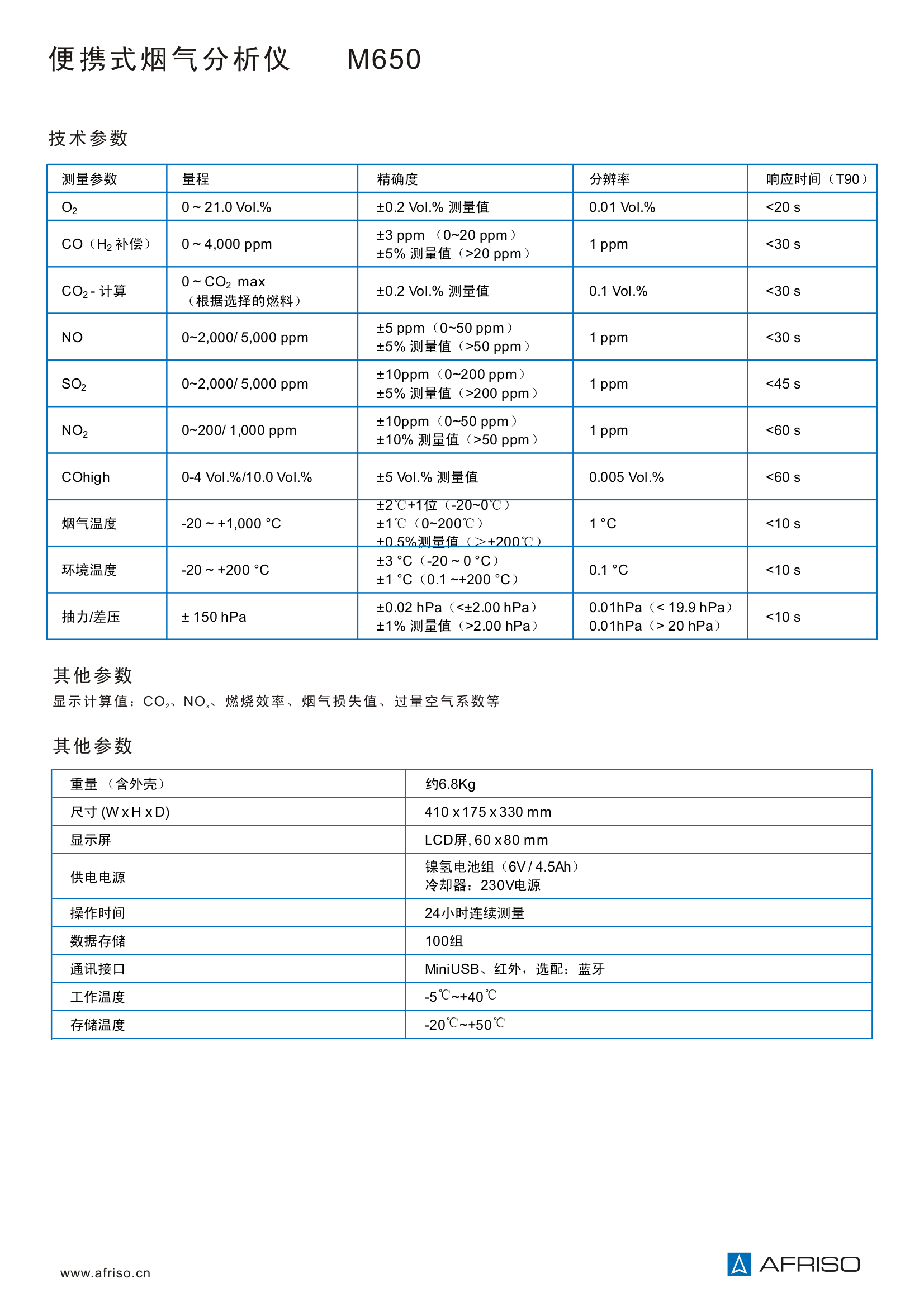 | 應用 | 便攜式煙氣分析儀Maxilyzer NG plus (M650)尤其適用于高濕低硫及脫硫脫硝后的煙氣檢測。儀器可選配3m長的電加熱采樣管,確保采樣過程中 NO2 和SO2 不會溶于冷凝水;同時儀器配置了自動除水蠕動泵,可以滿足長時間在線測量。 |