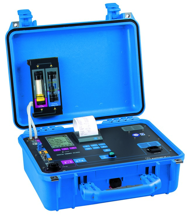 M650是一款便攜式煙氣分析儀,核心的分析組件內置于防護等級IP65的堅固外殼中,而且集成了熱敏打印機和帕爾貼電子冷卻器,待測氣體先后通過帕爾貼冷卻器冷卻和精細過濾器濾除灰塵后進入設備內部的電化學傳感器進行濃度分析。LCD背光顯示屏可同時顯示10行測量值。儀器具有測量值圖形顯示及煙道中心溫度搜索功能,內置第二空氣沖洗泵可以自動開啟保護CO/H2傳感器,延長使用壽命。自動顯示維護信息,便于檢修。 M650 煙氣分析系統集成了帕爾貼冷卻器,所以主要應用于長時間測量的場合(自動排除冷凝水)以及較高濃度NO2和SO2的測量。因為NO2和SO2易溶于水,而我們在測量中必須要消除因待測氣體溶于水而造成測量結果偏低的影響。所以檢測NO2和SO2時必須使用伴熱采樣管和一個氣體冷卻器。通過這些裝置的組合,我們就可以避免上述情況的發生。加熱的氣體通過的冷卻器的冷卻排除冷凝水,實現氣水分離。 |